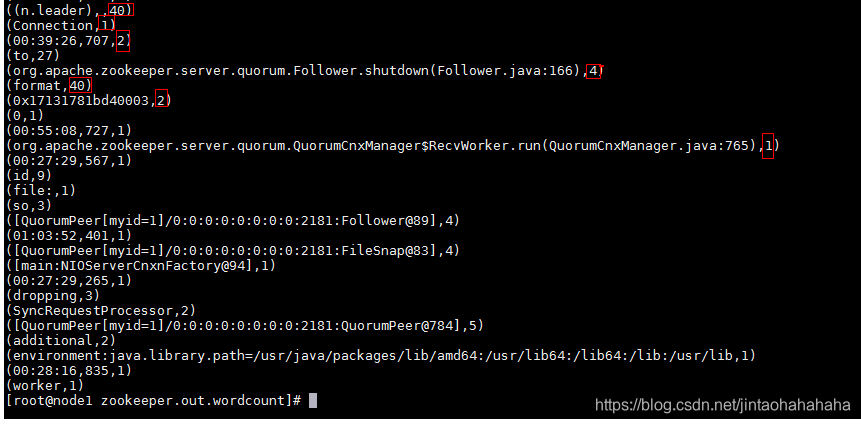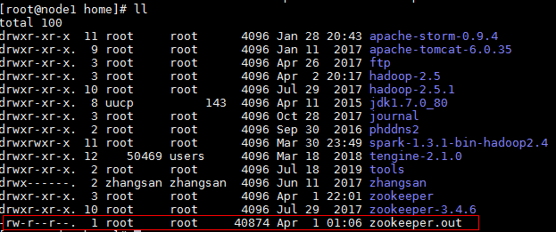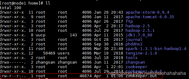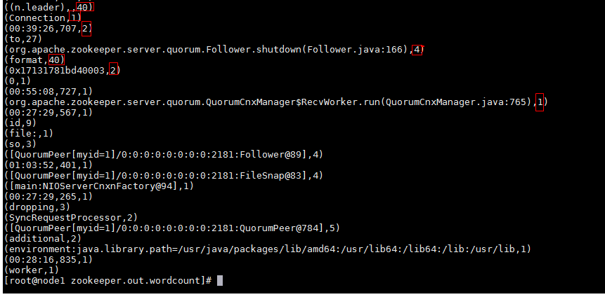 3.1、给node1服务器上传一个文件,待Spark统计其中单词数,这里我使用的文件是/home/zookeeper.out