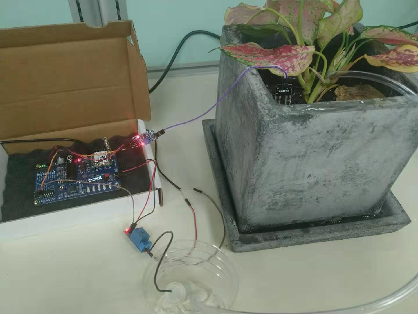 硬件连接部分有个要注意的,在电源部分,水泵这种大功率设备如果直接接到开发板会引起电源波动,会影响 LoRa 射频的信号接收,因此我是单独给水泵再供电5V。