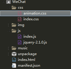 动画我们需要又引入一个css文件来实现。css中实现动画的技术是[animation]属性和【transform】属性,需要使用之前,先百度了解其使用方式。