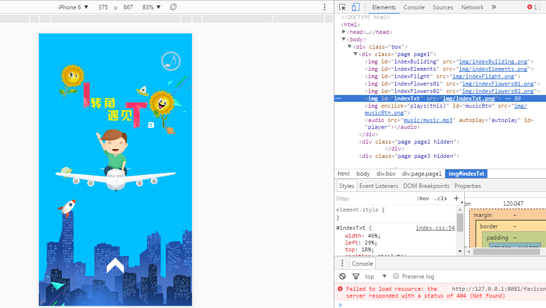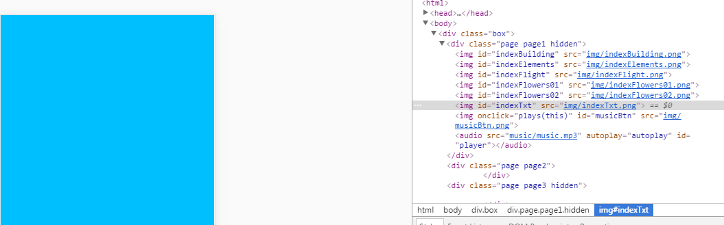 4.设置完成这一步之后,再浏览器中调试时,按F12调出检查面板,切换到手机端模式,就能看到第一页的背景色,这是第一步已经成功了。接下来我们按照思维来就是应该实现滑动翻页了。