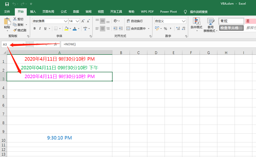 在Excel中,我们可以使用year(), month(), day(), hour(), minute(), second()等动态函数,结合文本转换函数text()或自定义格式等,对日期、时间设置一些动态的日期或时间格式。但通过函数或自定义格式设置的日期、时间是不会动态地变化的(除非双击激活某个单元格、或者全手动或者按 F9快捷键 刷新、退出后重新打开表格、重新运算),这样操作起来会很麻烦,逼格也稍微有点低。为了解决这个问题,我们这时就需要用到VBA代码来自定义、扩展丰富一下我们的需求。操作如下: