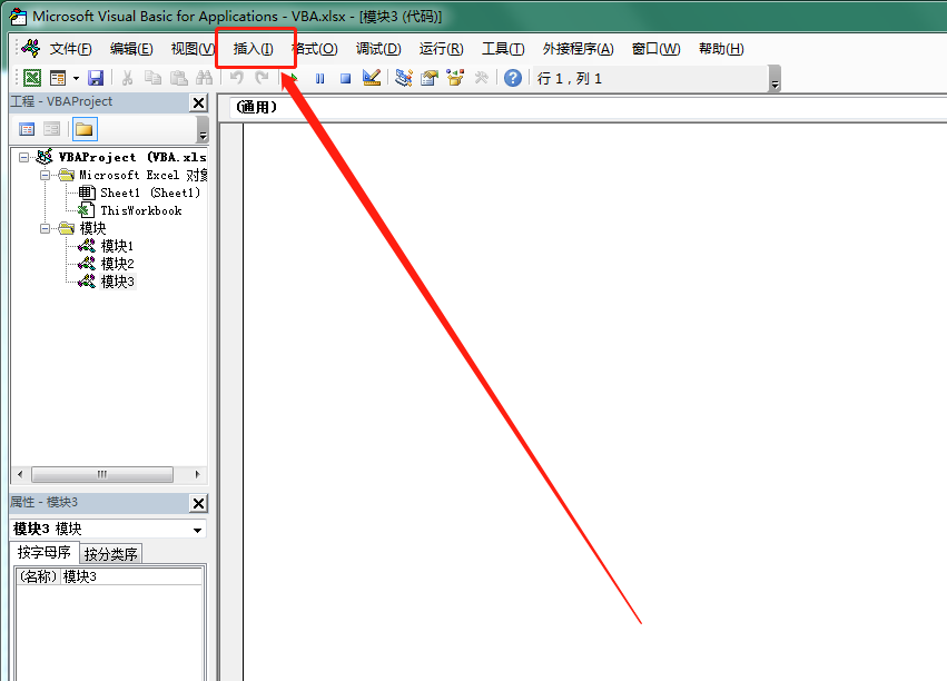 ③ 接着点击所跳出窗口左上角第4个选项卡“插入”,再点击其下的子菜单“模块”