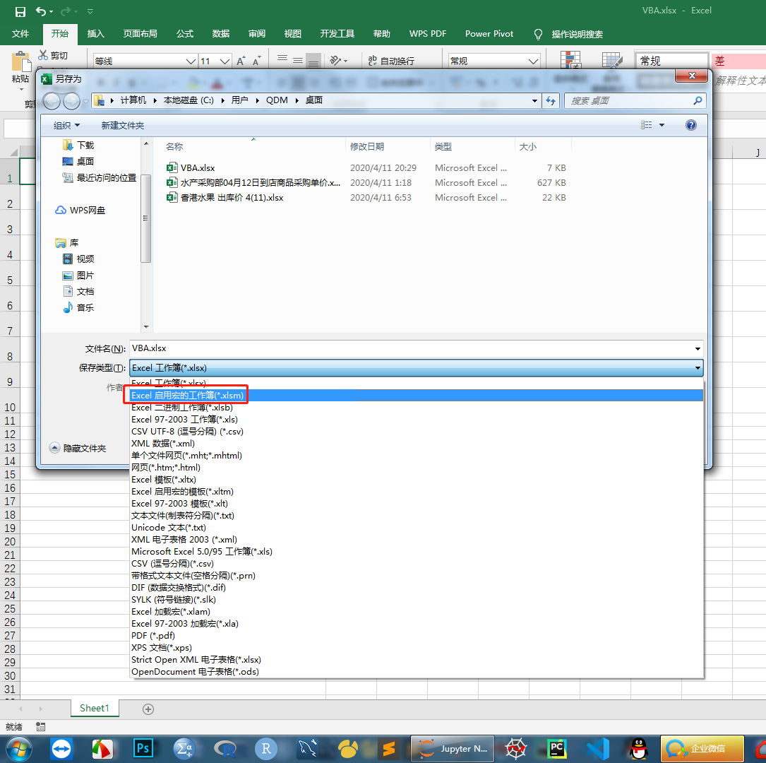 ⑤ 写好代码后,点击另存为以 .xlsm 结尾的宏文件