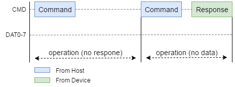 在 Host 与 eMMC Device 的通信中,有部分交互是不需要进行数据传输的,还有部分交互甚至不需要 eMMC Device 的回复 Response。