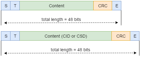 eMMC Response 有两种长度的数据包,分别为 48 Bits 和 136 Bits。