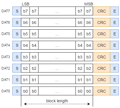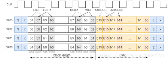 NOTE: 总线宽度为 1 时,只发送 DAT0 上的数据,总线宽度为 4 时,则只发送 DAT0-3 上的数据。