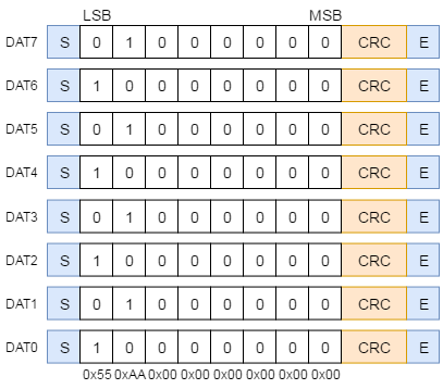 各个 Data Line 上的 CRC 为对应 Data Line 的 Data 的16 bit CRC 校验值。