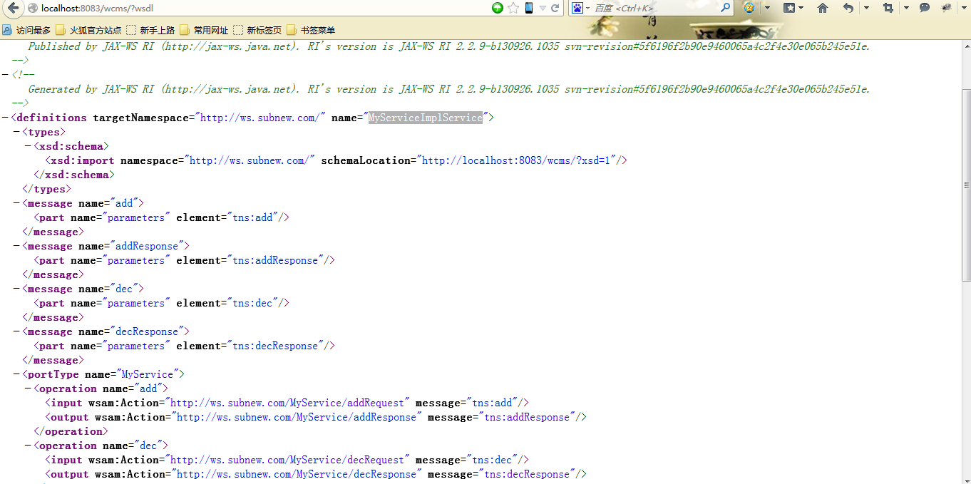 试试访问: http://localhost:8083/wcms/?wsdl 会出现如下界面