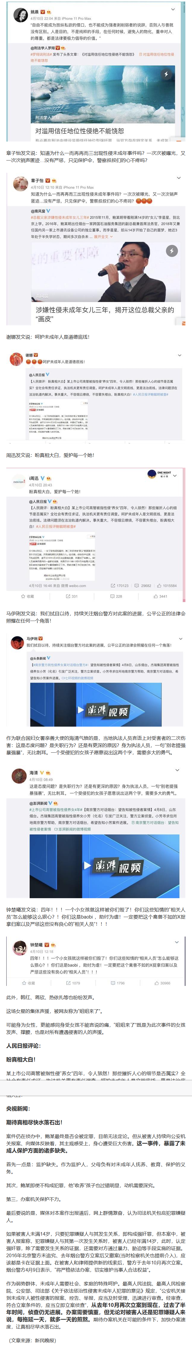 5、【被指性侵养女高管姐姐:弟弟和控告女孩非养父女关系】4月11日,集团高管被指性侵养女事件舆论汹涌。澎湃新闻致电鲍某明姐姐,对方表示,鲍某明和报警女孩并非养父女关系,并且女孩和妈妈曾经去过鲍的老家见过父母。#要谈恋爱啊。厉害了。#
