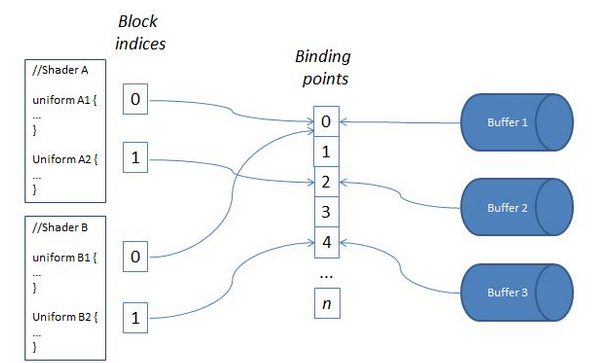 void glUniformBlockBinding(GLuint program, GLuint uBlockIndex, GLuint uBlockBinding);