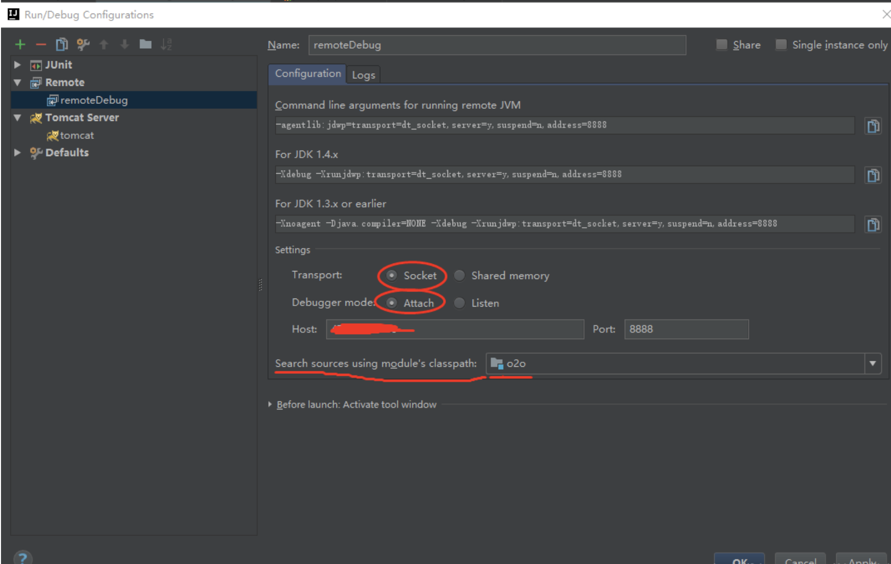 search source using module‘s classpath,这里要选择自己所要远程连接调试的项目