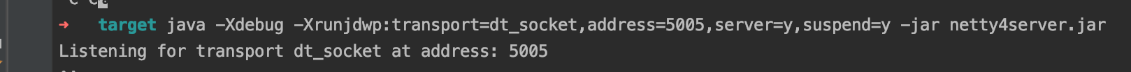 java -Xdebug -Xrunjdwp:transport=dt_socket,address=5005,server=y,suspend=y -jar netty4server.jar