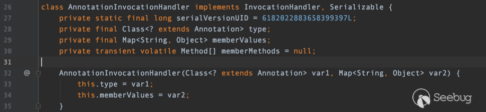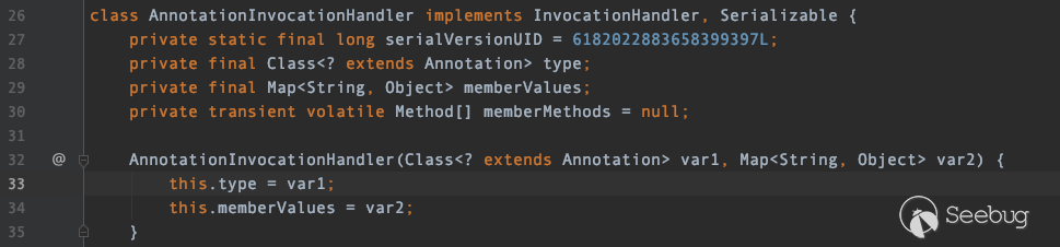 之前已经简单介绍过了什么是反序列化,JDK序列化/反序列化。如果反序列化的类里有readObject方法,那么就一定会调用该方法。这就给了我们一个可趁之机,我们观察一下AnnotationInvocationHandler对象中都执行了些什么。
