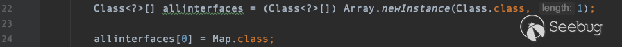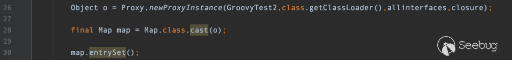 然后返回到我们之前的payload中我们可以看到我们使用Proxy.newProxyInstance方法生成了一个代理对象,然后将其强转成了一个Map对象然后调用了entrySet方法。