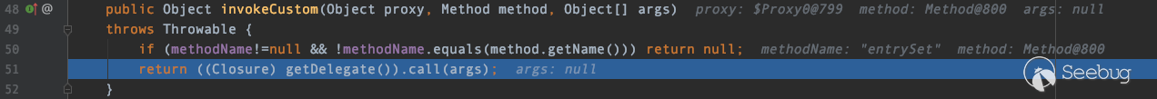 之前我们创建ConvertedClosure对象时为methodName属性赋了值“entrySet”此时我们调用的是代理对象的entrySet方法,自然传递进来method的值也是“entrySet”符合判断。