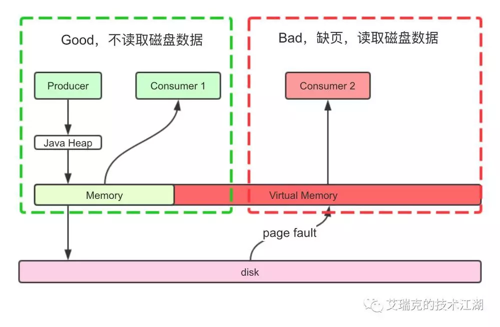 RMQ想要性能高,那发送消息时,消息要写进Page Cache而不是直接写磁盘,接收消息时,消息要从Page Cache直接获取而不是缺页从磁盘读取。