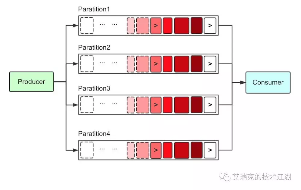 Kafka中关于消息的存储只有一种文件,叫做Partition(不考虑细化的Segment),它履行了RMQ中Commit Log和Consume Queue公共的职责,即它在逻辑上进行拆分存,以提高消费并行度,又在内部存储了真实的消息内容。