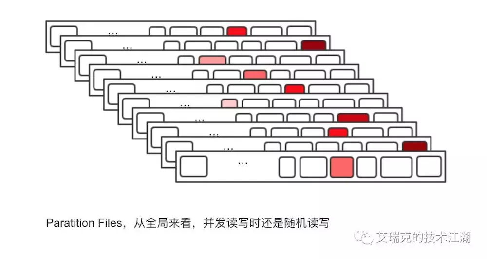 这样看上去非常完美,不管对于Producer还是Consumer,单个Partition文件在正常的发送和消费逻辑中都是顺序IO,充分利用Page Cache带来的巨大性能提升,但是,万一Topic很多,每个Topic又分了N个Partition,这时对于OS来说,这么多文件的顺序读写在并发时变成了随机读写。