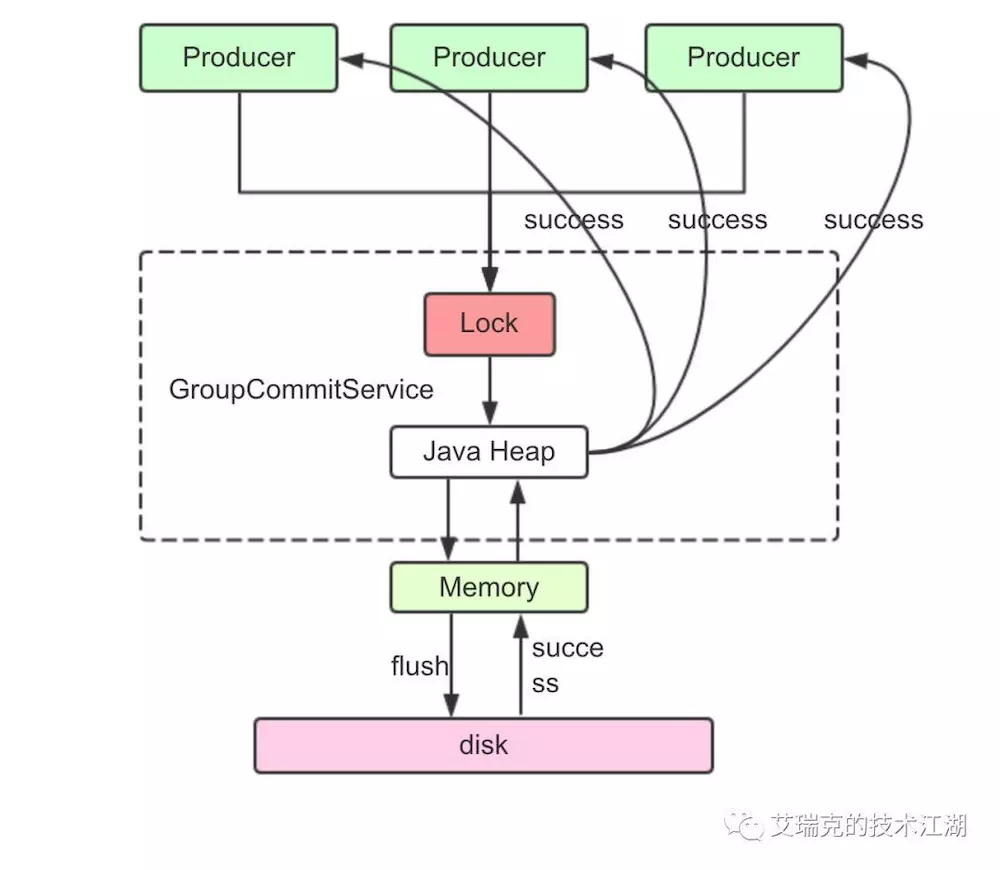 一般只用于金融场景,这种方式不是本文讨论的重点,因为没有利用Page Cache的特点,RMQ采用GroupCommit的方式对同步刷盘进行了优化。