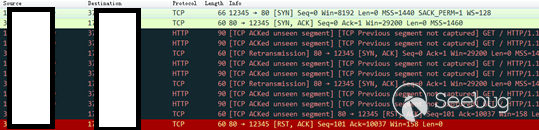 一些IPS是字节级逐包检查的,并没有实现TCP分片重组能力,那就把关键字拆到两个TCP包里面就可以暗度陈仓。以下是Perl实现的TCP分片HTTP请求,关键字是“www.bad.com”,会拆分到两个TCP包发出。