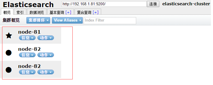 ES 在1.x版本的时候只需要同一网段中各节点的集群名称相同,集群中各节点就可以自动发现并加入集群,2.X 版本之后的集群发现采用的是单播方式,需要配置下需要发现的各节点IP,具体的配置参考上面截图中黄色箭头部分,配置成功之后