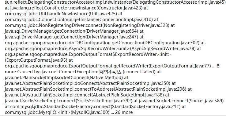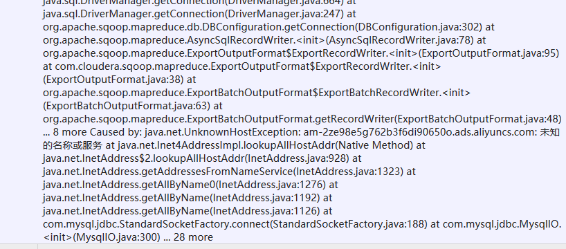 最后分析sqoop的运行机制导致,发现是集群节点不能连接到adb。