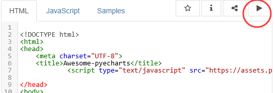 等加载好了之后,我们点击上面“HTML”模块,复制代码,然后点击右上角长得有点像播放键的按钮: