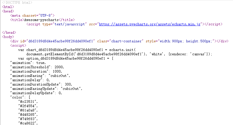 已知,pyecharts绘制的图形可以保存为html格式,通过网页打开,也能查看html源代码