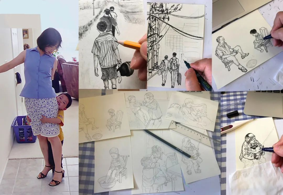中断了一段时间的《石头和爸爸》,这一期大致分两次画完,画风因此也不太一致。一部分是去年为清明节所绘,线条简洁,一部分完成于今年疫情隔离期间,随着新生命的诞生,又想起那些长沙的亲人,石头和爸爸在老家的不少情形又再次具体起来。