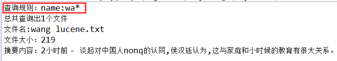 以上是范围查询的主要代码,查询的是大小范围在90到500之间的文件,可以看到这里把90写成了090,这是因为lucene范围查询是直接比较字符串,依次比较字符ASCLL码,90比500大,如果直接写成90的话,就会查询不出数据。