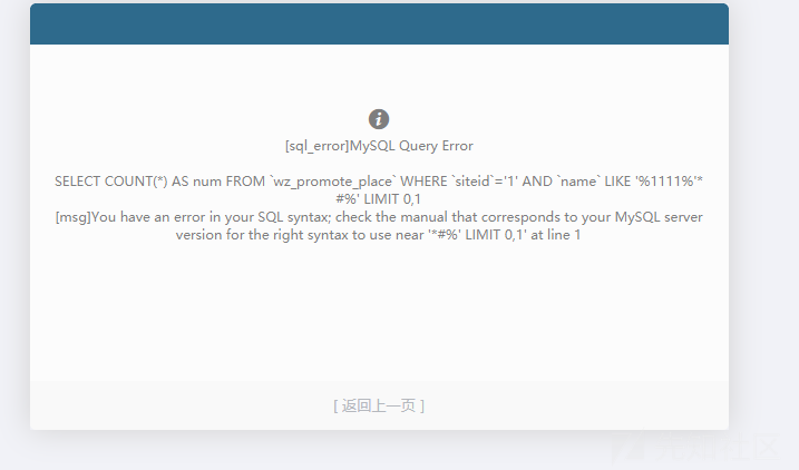 http://10.1.1.6/index.php?m=promote&f=index&v=search&_su=wuzhicms&fieldtype=place&keywords=1111%'*%23