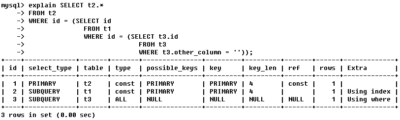 ② id 不同,如果是子查询,id的序号会递增,id值越大优先级越高,越先被执行