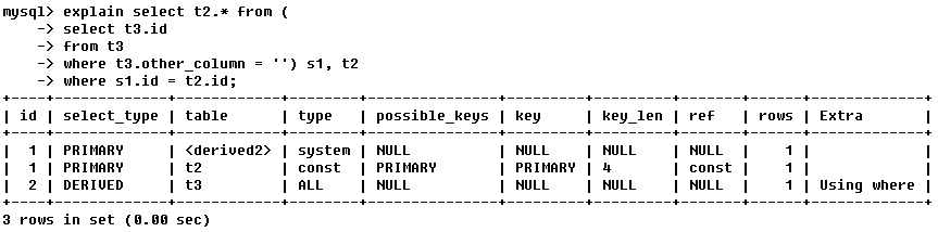 select或where列表中包含了子查询 - derived:在