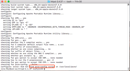 cd 进入到Apache解压后文件夹所在的路径,enter回车,再输入以下命令:./configure --prefix=/usr/local/httpd -with-apr=/usr/local/apr -with-apr-util=/usr/local/apr-util -with-pcre=/usr/local/pcre/,enter回车,出现以下页面: