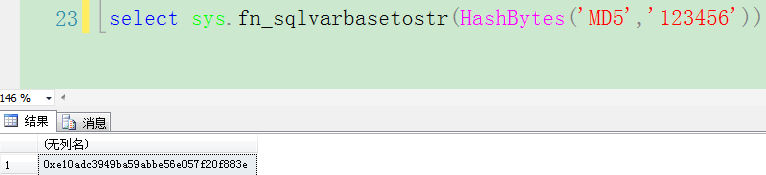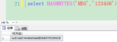 HASHBYTES生成的结果为:0xE10ADC3949BA59ABBE56E057F20F883E