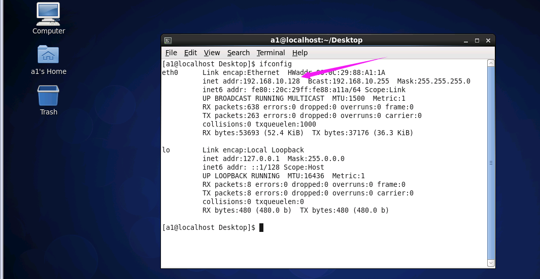 使用命令 ifconfig 可以看到当前虚拟机的ip、然后使用此ip将虚拟机进行重命名、方面以后使用