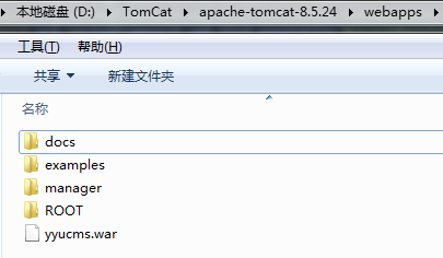 拷贝appcms-web.war包到tomcat webapp目录修改其名称为yyucms.war