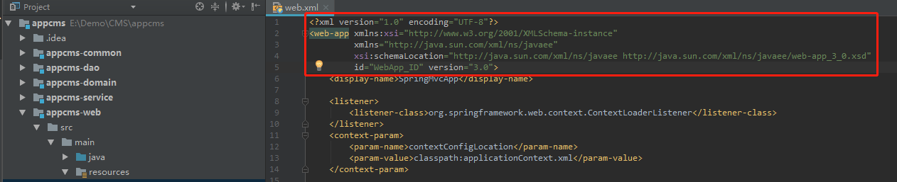 在web.xml文件中配置ContextLoaderListener,可能我的maven版本过低,生成的web.xml文件添加ContextLoaderListener配置会报错