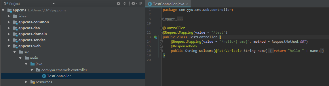 @RequestMapping(value = "/hello/{name}", method = RequestMethod.GET)