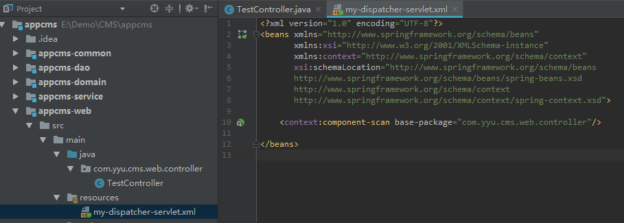 <context:component-scan base-package="com.yyu.cms.web.controller"/>