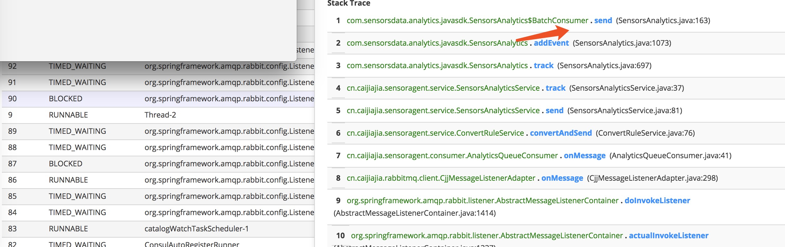 该方法会往神策发送数据,并且每次发送的时间很长,这也会严重阻碍到线程继续消费运行;