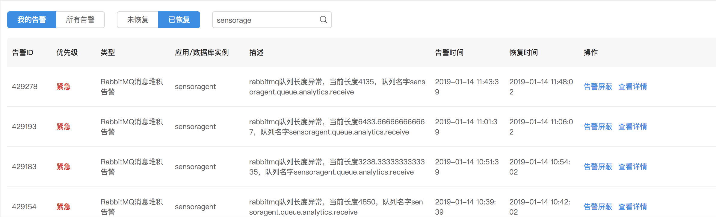 下图是我的告警(目前公司只有开发运维角色才会接收到告警)