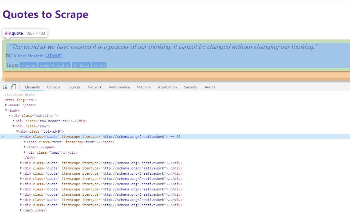 首先是获取到所有的 class 为 quote 的元素,然后将所有元素进行循环后取出其中的数据,最后对这些数据进行打印。