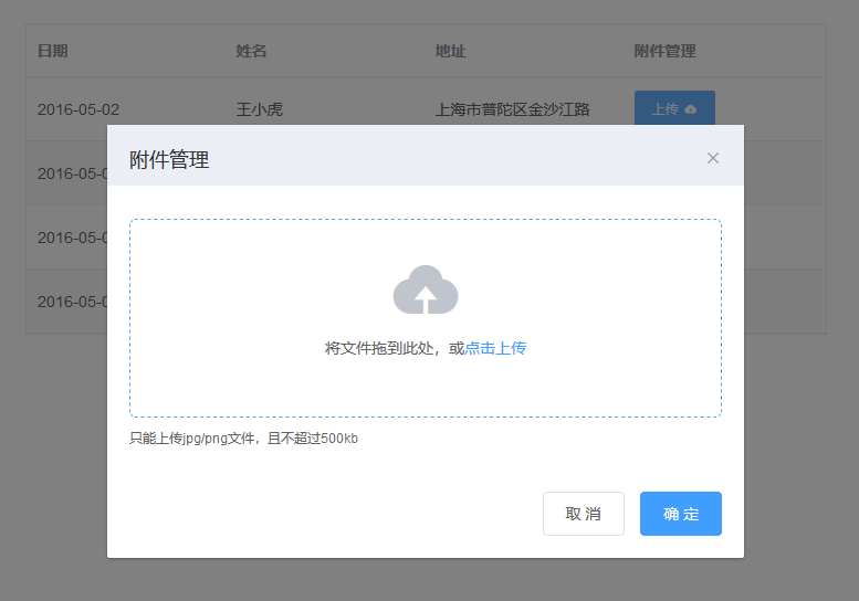 接下来就要实现这个功能:点击上传按钮展示附件上传弹框。