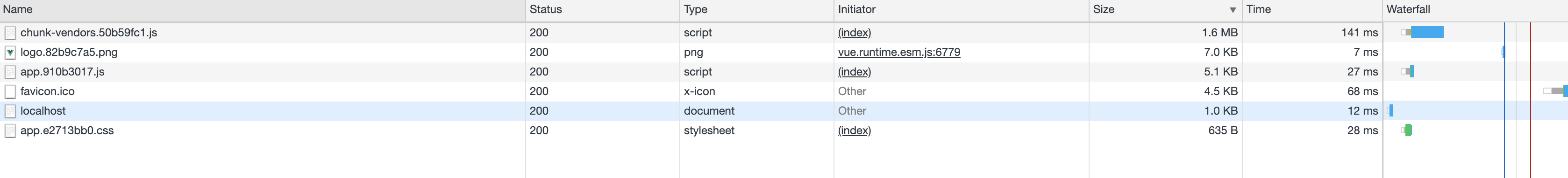首先看demo打包后生成的文件大小,这个demo里面什么业务都没写、仅仅引入了几个包,chunk-vendors.js就达到了1.6M之多,如果是写入了庞大的业务后没做任何优化处理,那么这个文件可能会达到10M之多,这发生在我真实的项目经历中