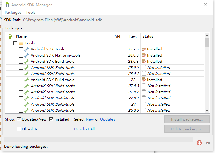报错:A newer version of the Android SDK is required,run : C:\Program Files (x86)\Android\android_sdk\tools\bin\sdkmanager --update