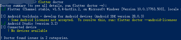 既然有提示那就跟着提示走咯。执行flutter doctor --android-licenses,一路 y 就好了,完成后会告诉你All SDK packages licenses accepted。