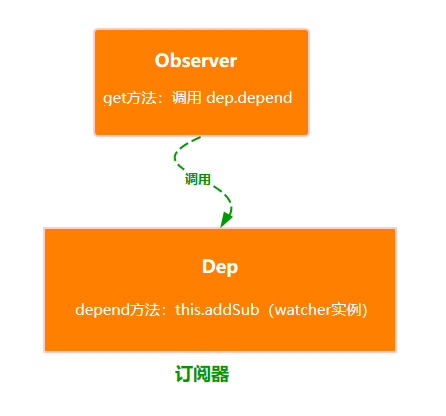 // addSub添加的是一个订阅者/依赖对象 // Watcher实例就是订阅者,在Watcher实例初始化的时候,已经将自己保存到了Dep.target中 if(Dep.target){ this.addSub(Dep.target); } }