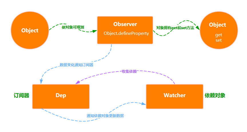 所以我们可以说双向数据绑定就是通过变化侦测这种方式去实现的,也可以说双向数据绑定是通过发布-订阅这种模式去实现的。